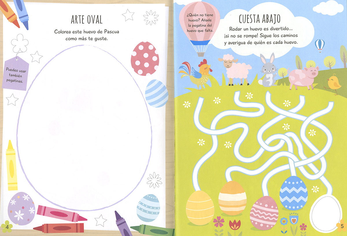 Encuadernación:  Cartulina plastificada mate con estampaci?n, interior con pegatinas y figuras de cart?n extra?bles