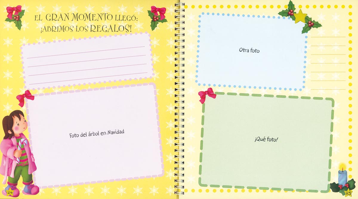 Un libro para reunir los más bellos recuerdos de una época tan especial como la Navidad. Podrás poner tus fotografías preferidas, apuntar anécdotas, tus deseos y propósitos para el Año Nuevo... ¡y además decorarlo a tu gusto con las pegatinas!