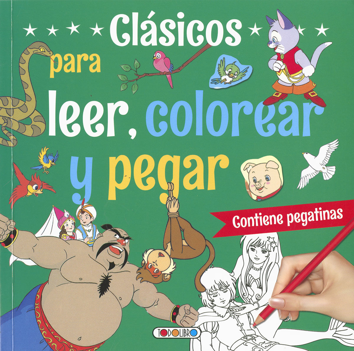 Si te gustan los cuentos, se te da bien colorear y te diviertes con las pegatinas, en este libro lo encontrar?s todo. Abre sus p?ginas y p?salo en grande con el mundo de los cuentos cl?sicos.