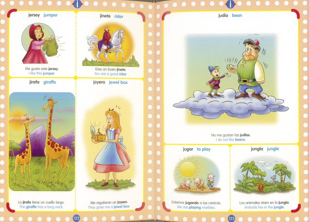 Este diccionario, de im?genes claras y divertidas, es un estupendo aliado para aprender ingl?s y afianzar el vocabulario que el ni?o ya conoce. Cada palabra va acompa?ada de una oraci?n en espa?ol e ingl?s, que le ayuda a utilizar cada t?rmino en su contexto. Unas atractivas ilustraciones, junto con la frase que las acompa?a, explican con humor el significado de cada una de las palabras.