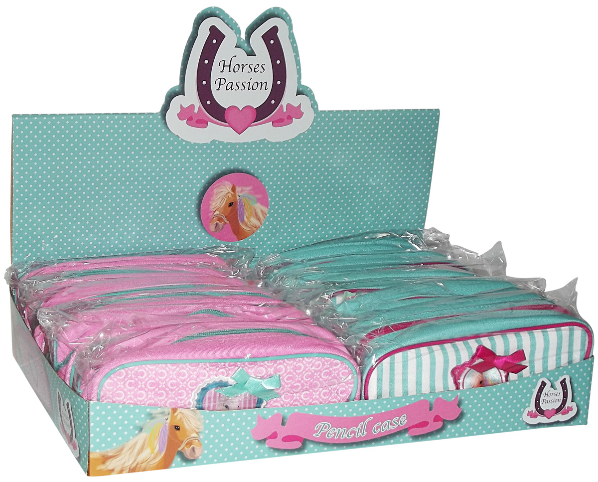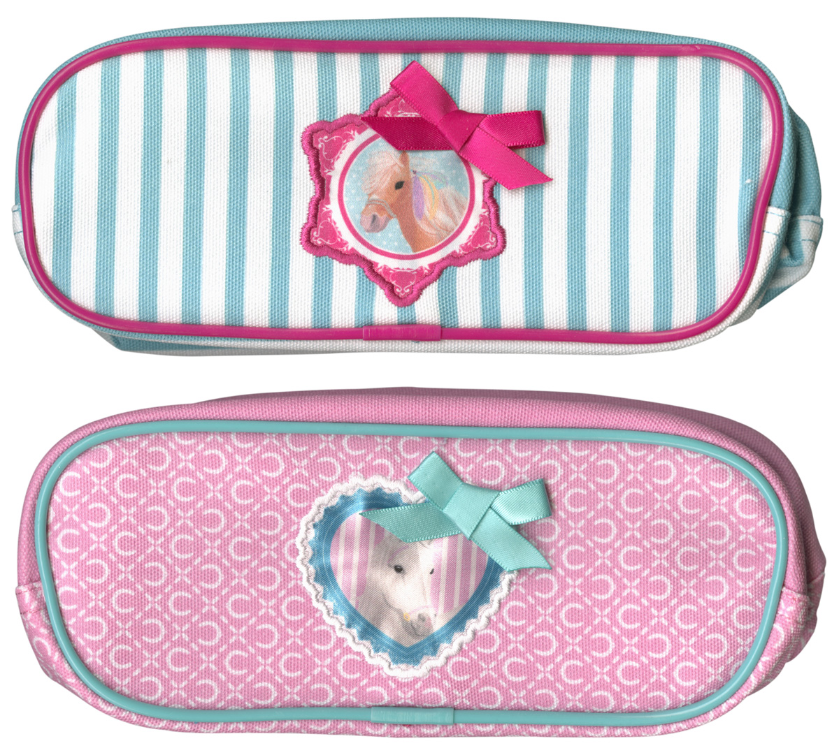 Una caja que incluye fantásticos estuches de dos colores con preciosos motivos equinos muy prácticos para guardar el material escolar y todo lo que se te ocurra.
