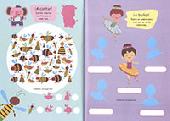 Encuadernación:  Cartulina plastificada mate y brillo con purpurina, interior con pegatinas