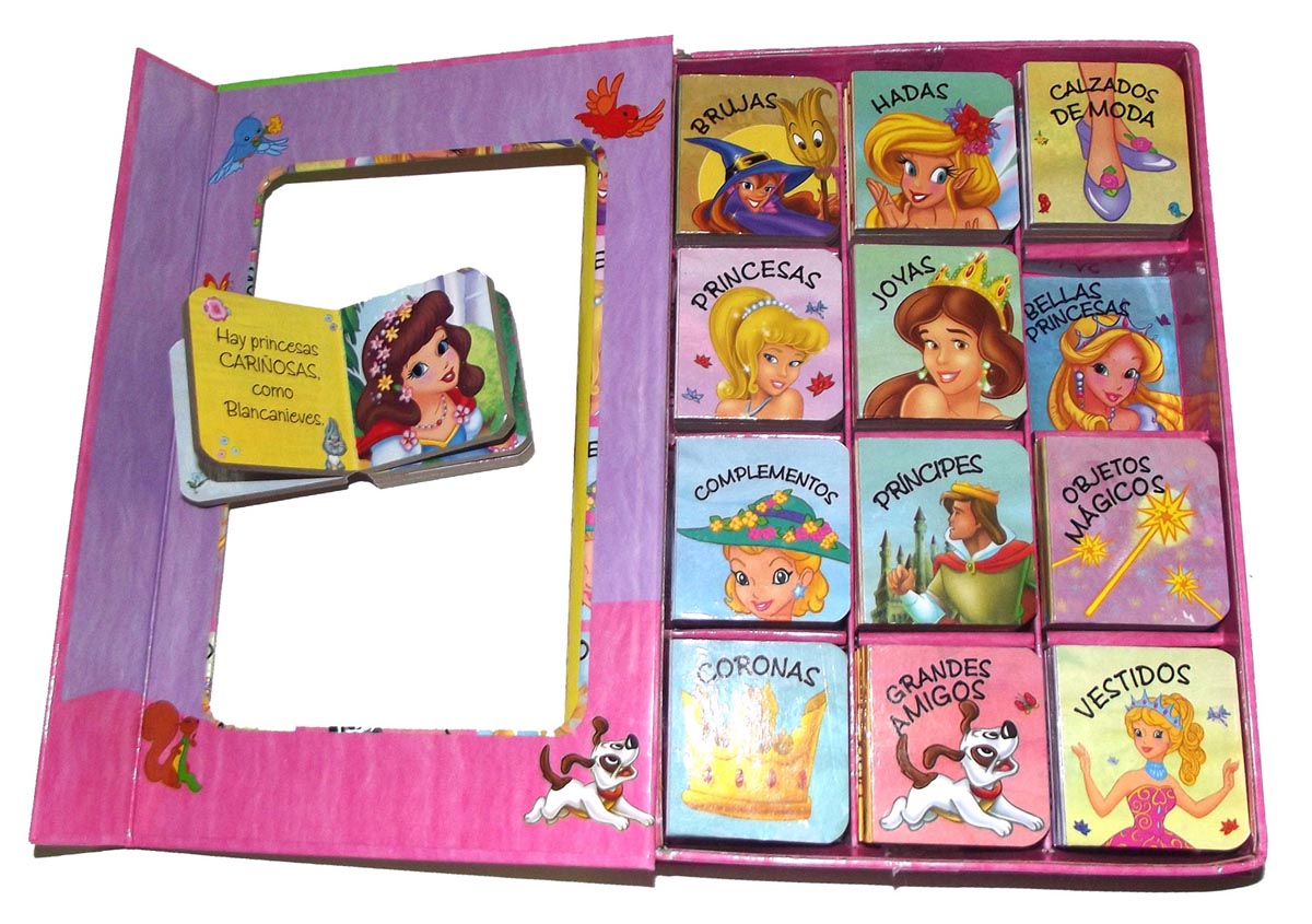 Descubre el mundo de las princesas, las brujas y los príncipes: vestidos, joyas, magia... Un estuche con 12 minilibros de cartón muy divertidos, que podrás encajar ¡como si fuera un puzle!