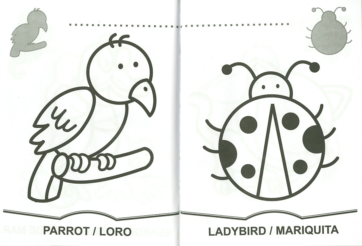 Un divertido libro de colorear con sencillas ilustraciones de trazo grueso y pegatinas de gran formato... ?ideal para manos peque?as!