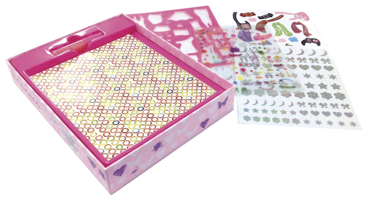 Un completo equipo para que brilles en tus primeros diseños con tus Princess Top. Dentro de la caja encontrarás pegatinas, plantillas, estampados, y hasta un bote de purpurina.