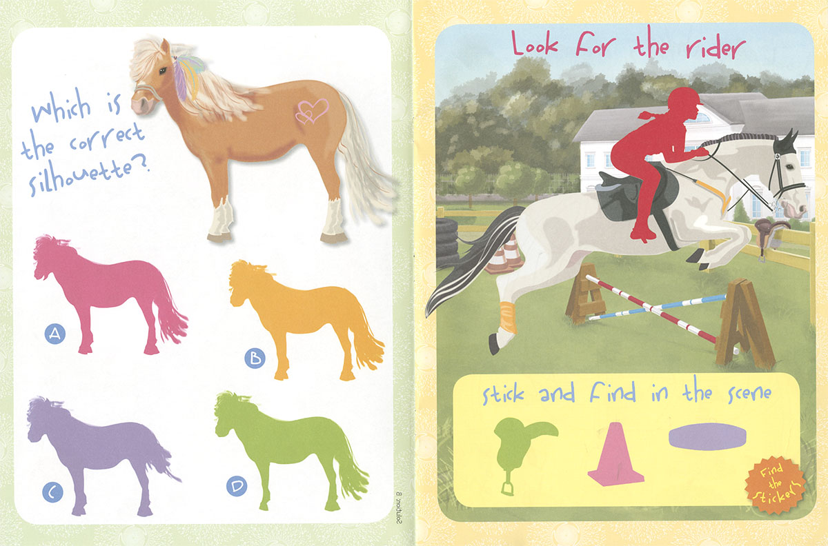 Una divertida colección para entretenerte durante horas. Cada libro te ofrece una muñeca pretroquelada para vestir, con su ropa y sus complementos, muchos pasatiempos relacionados con el apasionante mundo de los caballos, y pegatinas para completar cada página.
