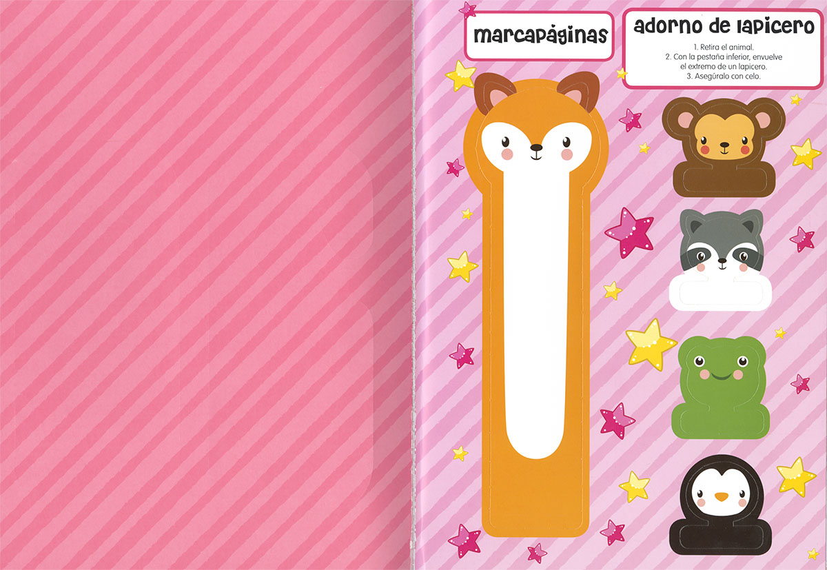 Encuadernación:  Cartulina plastificada mate y brillo y troquelada, interior con piezas precortadas y pegatinas